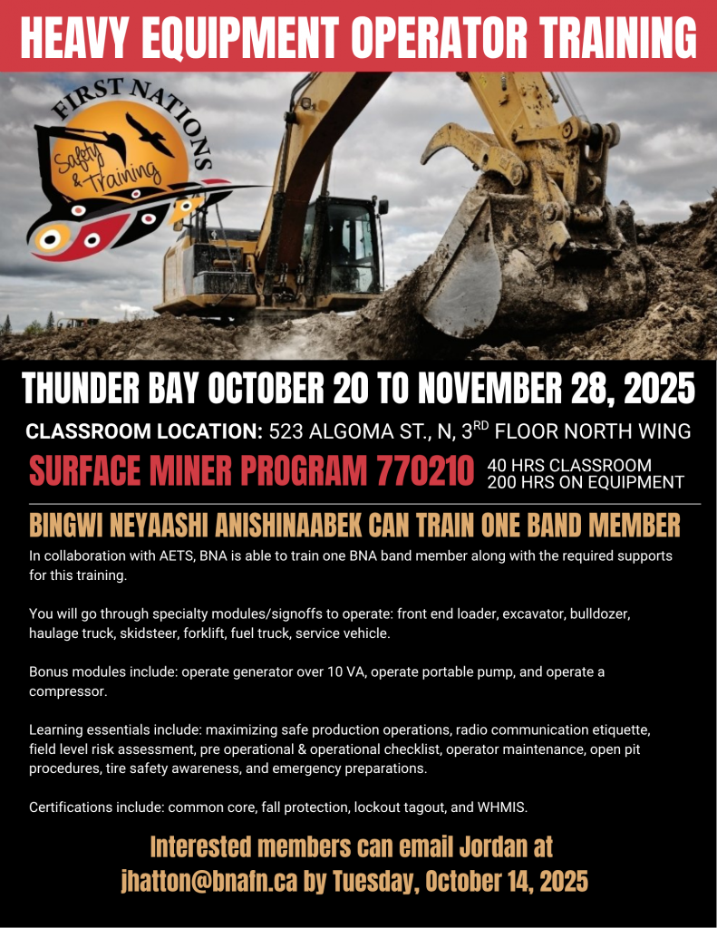 Interested members can email Jordan at jhatton@bnafn.ca by October 14, 2025.