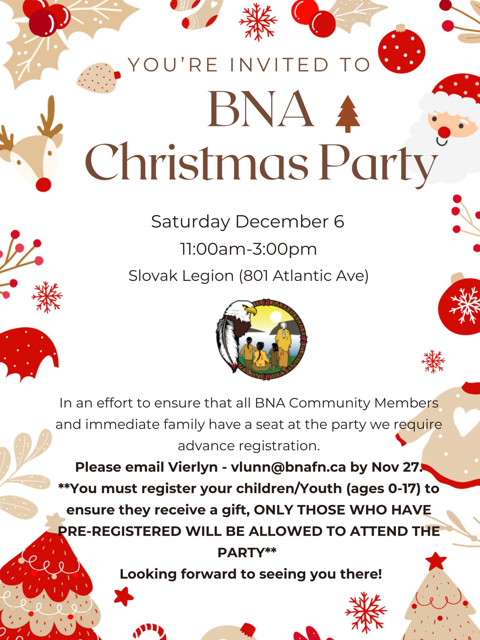 A big thank you to Chondon Photography for capturing all the joy from our Community Christmas Party. To view the photos, please click the link below. If you wish to download these photos, please email jalfieri@bnafn.ca for the PIN (band members access only).